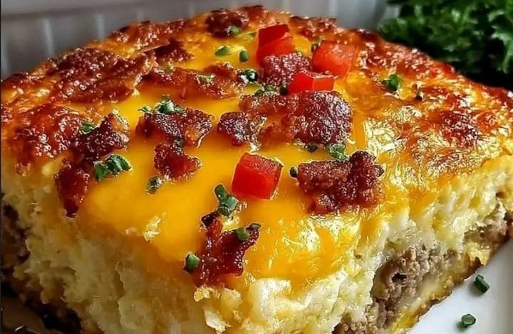 Perfect for weekend brunches, holiday mornings, or meal prep for the week, this casserole is both filling and easy to prepare. The top bakes to a beautiful golden crust, while the inside stays soft, moist, and packed with savory flavor. Each bite delivers creamy eggs, seasoned meat, smoky bacon, and melted cheese — a combination that feels indulgent yet comforting.