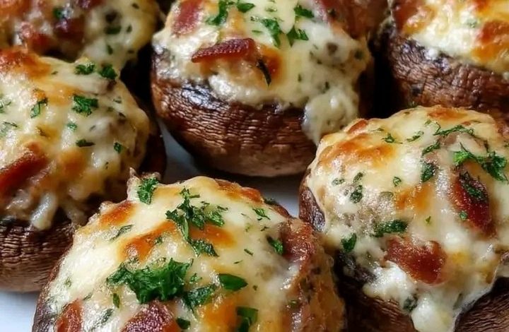 What makes this recipe so appealing is the wonderful balance of textures and flavors. The mushrooms become tender and juicy as they bake, while the filling turns creamy and satisfying. The cheese melts into a bubbly, golden crust, and the bacon adds a smoky, slightly crispy element that makes every bite even more delicious. Fresh parsley on top gives the final dish a touch of color and freshness, making it as beautiful as it is tasty.