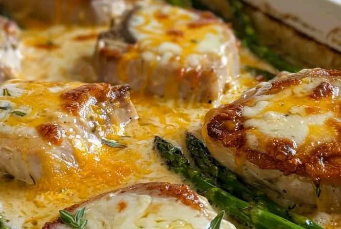 When it comes to comfort food, few dishes can rival the rich and savory taste of baked pork chops smothered in a creamy sauce and topped with melted cheese. This recipe combines juicy pork chops with fresh asparagus, all baked together in a single dish. The result is a hearty, flavorful meal that is not only satisfying but also elegant enough to serve on special occasions. With the perfect balance of protein, vegetables, and creamy indulgence, Cheesy Baked Pork Chops with Asparagus is a dish that will delight both family and guests.