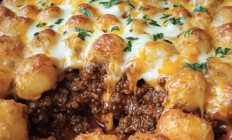 This Cheesy Beef Tater Tot Casserole is the ultimate comfort food—warm, hearty, and incredibly satisfying. With a savory ground beef base simmered in rich sauce, topped with a layer of golden, crispy tater tots, and finished with melty cheese, this dish is everything you want in a cozy homemade meal. It’s a family-friendly classic that’s perfect for busy weeknights, potlucks, game nights, or chilly evenings when you crave something warm and filling. Each bite delivers a delicious mix of textures: crispy on top, cheesy in the middle, and meaty underneath. Simple to prepare and full of flavor, this casserole is sure to become a staple in your kitchen.