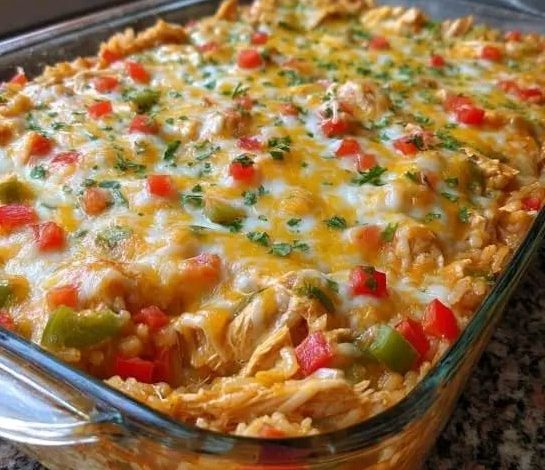 This cheesy chicken and rice casserole is the ultimate comfort-food dish that brings warmth, color, and rich flavor to the table. Made with tender shredded chicken, perfectly cooked rice, colorful bell peppers, and a creamy, cheesy topping, this recipe is ideal for busy weeknights, family gatherings, or anytime you want a satisfying one-dish meal. It’s hearty, filling, and packed with familiar flavors that everyone enjoys.