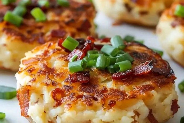 Cheesy Mashed Potato Cakes with Bacon & Green Onion