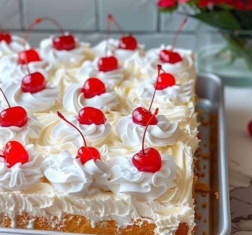This Cherry Whipped Cream Cake is the kind of classic, old-fashioned dessert that brings comfort with every single bite. Light, fluffy, and beautifully creamy, it layers soft vanilla cake with billows of whipped topping, finished with bright maraschino cherries that add a nostalgic bakery-style touch. It’s elegant enough for celebrations yet simple enough to make any day feel special. Whether you’re hosting guests, preparing a potluck dessert, or just craving something sweet and cloud-like, this cake always leaves a lasting impression.