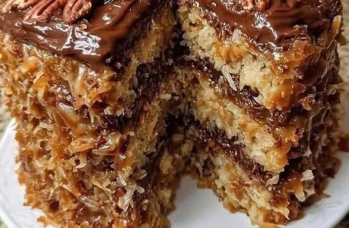 This Chocolate Coconut Pecan Layer Cake is a show-stopping dessert that brings together deep chocolate richness, chewy caramel-coconut layers, and crunchy toasted pecans. Every slice is a masterpiece—thick, moist layers filled with a luscious coconut-pecan filling and generously topped with smooth melted chocolate and roasted pecans. This cake is reminiscent of a luxury German chocolate cake but with even more texture, decadence, and homemade charm. Perfect for celebrations, holidays, or whenever you want to impress your family and guests, this cake delivers unforgettable flavor in every bite. Rich, gooey, nutty, and beautifully layered, it’s a dessert that looks spectacular and tastes even better.