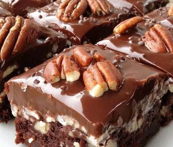 Rich, glossy, and irresistibly decadent—these Chocolate Pecan Fudge Brownies are the kind of dessert that makes any occasion feel special. Each square is a perfect balance of dense chocolate brownie, creamy nut-studded filling, and a silky chocolate topping crowned with toasted pecans. The layers come together to create a luxurious treat that’s indulgent without being overly complicated. Whether you’re serving them at a gathering, gifting them to loved ones, or simply enjoying a moment of sweetness at home, these brownies are guaranteed to impress with every bite.