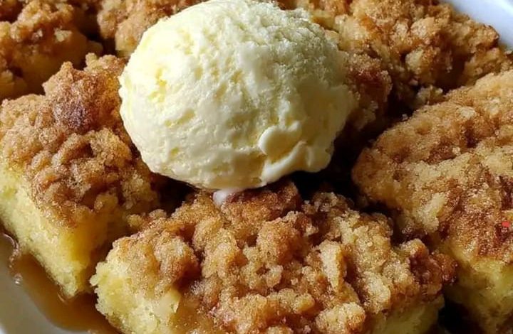 There is something incredibly comforting about a warm slice of cake topped with a buttery crumble and finished with a scoop of creamy vanilla ice cream. 🍰✨ This Cinnamon Crumble Coffee Cake with Caramel Drizzle is soft, moist, and layered with sweet cinnamon flavor, then crowned with a golden crumb topping that adds the perfect crunch.