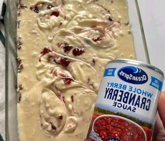 Spoon the cream cheese mixture over the cranberry layer, gently spreading it out. You don’t need to be perfect—swirls add character and flavor.
