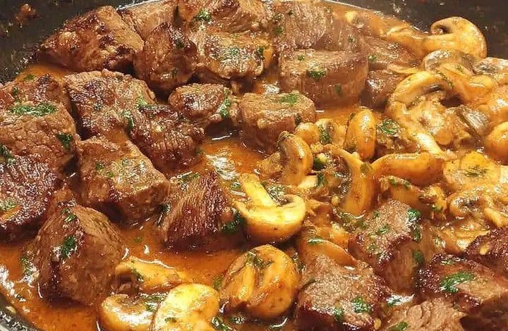 Garlic butter steak bites with mushrooms is a rich, hearty, and flavorful dish made with tender pieces of beef cooked in a savory sauce. The mushrooms absorb the garlic butter and meat juices, creating a delicious combination that is perfect for dinner. This recipe is easy to prepare, comforting, and elegant enough to serve for family meals or special occasions.