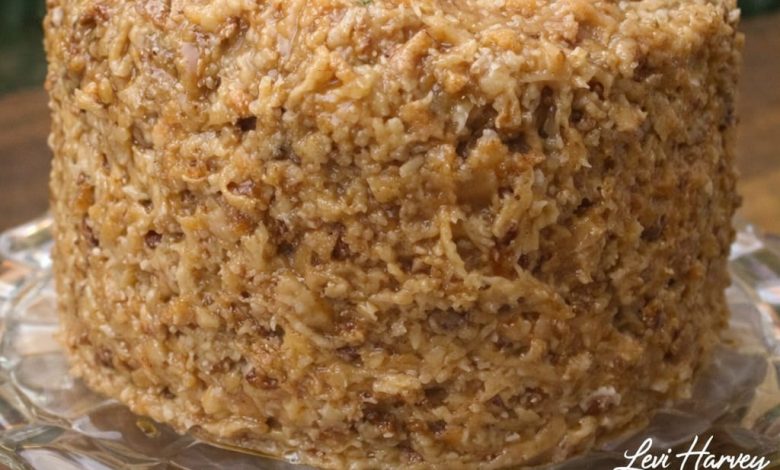This cake is often served at celebrations and family gatherings because it looks impressive while being surprisingly easy to prepare. The sweet caramel-like frosting made with coconut and chopped pecans adds incredible moisture and crunch, making it completely irresistible. Whether enjoyed with a cup of coffee or as a show-stopping dessert after dinner, this cake is guaranteed to delight everyone at the table.