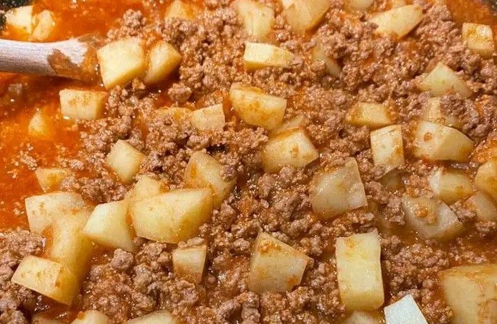 One of the best qualities of this recipe is its balance between taste and practicality. The minced beef adds a rich savory flavor, while the potatoes make the dish more hearty and satisfying. The tomato sauce ties everything together, giving the meal a warm color, a soft texture, and a delicious aroma. It is a recipe that feels both rustic and comforting, and it can easily become a regular part of home cooking because it uses ingredients that are often already available in the kitchen.