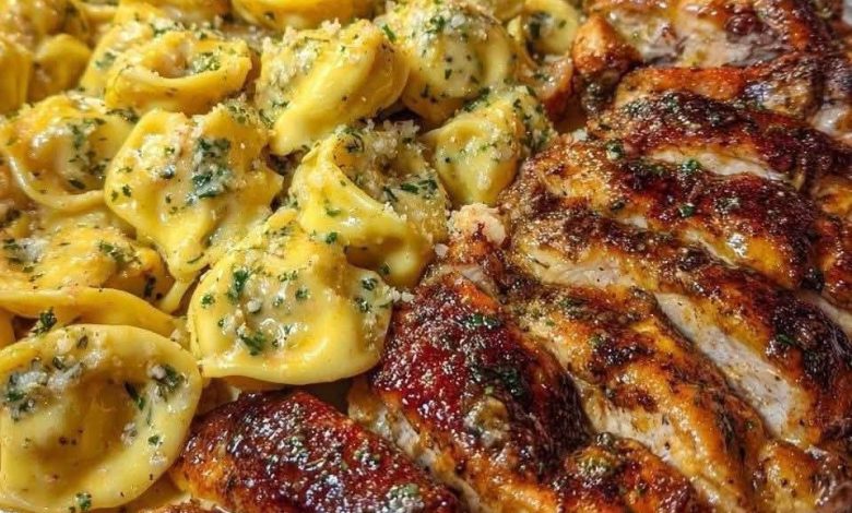 This dish brings together two comforting classics — tender, honey-glazed chicken and rich, creamy garlic tortellini. Perfect for cozy dinners or impressing guests, it balances the savory depth of well-seasoned grilled chicken with the buttery smoothness of cheese-filled pasta. Every bite offers a harmony of textures and flavors: the crisp caramelized glaze of the chicken contrasts beautifully with the velvety, garlicky sauce coating the tortellini.