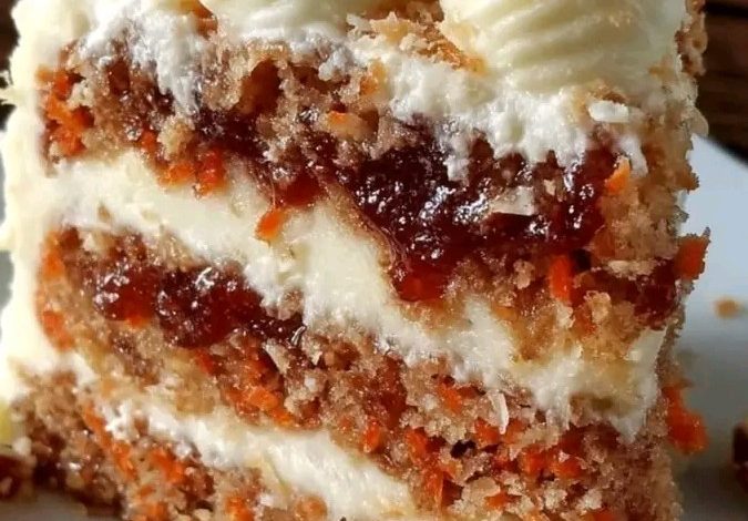 Layered Carrot Cake with Cream Cheese Frosting is a wonderful dessert that combines softness, richness, warmth, and beauty in one memorable recipe. The moist carrot cake layers, the smooth cream cheese frosting, and the optional fruity filling create a perfect balance of flavor and texture. It is a dessert that feels homemade and comforting, yet elegant enough for special occasions and celebrations.