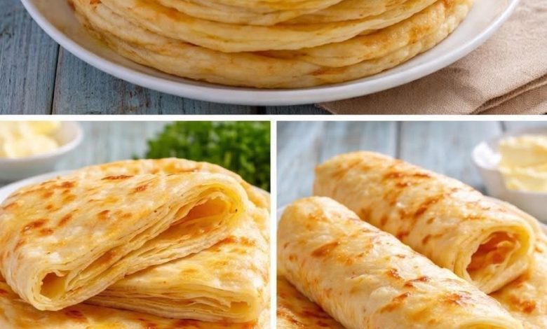 This dish is not just an ordinary flatbread. It is a layered and flavorful bread that stands out because of its soft interior and lightly crisp exterior. Each piece is made by preparing a smooth dough, shaping it carefully, and creating thin layers that give the bread a tender and flaky texture after cooking. The cheese filling melts gently between the layers, adding a creamy and savory taste that makes every bite rich and satisfying. The flatbread can be folded, stacked, or rolled, and it keeps its appealing texture whether served hot or warm. It is often enjoyed in many homes as a comforting homemade food because it is filling, versatile, and easy to pair with many side dishes. Some people prefer serving it with tea in the morning, while others enjoy it with soup, salad, or dips during lunch or dinner. The beauty of this recipe lies in its balance between simplicity and flavor. Although it looks special and elegant, it is made from everyday ingredients and can easily become a favorite family recipe.
