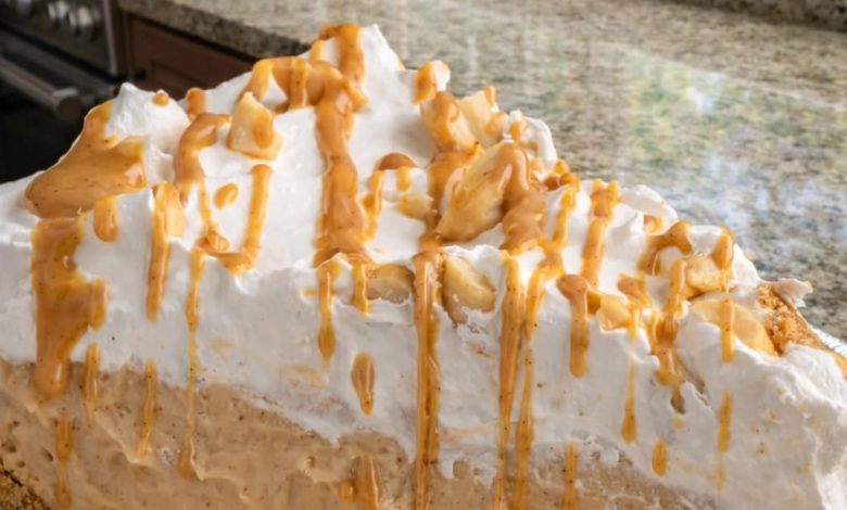 No-Bake Peanut Butter Cream Pie is a rich, smooth, and comforting dessert that combines the deep flavor of peanut butter with the light sweetness of whipped cream in a soft, creamy filling. From the image, this dessert appears elegant yet homemade, with a crumbly biscuit crust, a thick peanut butter layer, a generous cloud of whipped topping, and a beautiful drizzle of peanut butter sauce over the top. It is the kind of dessert that immediately attracts attention and makes everyone want a slice.