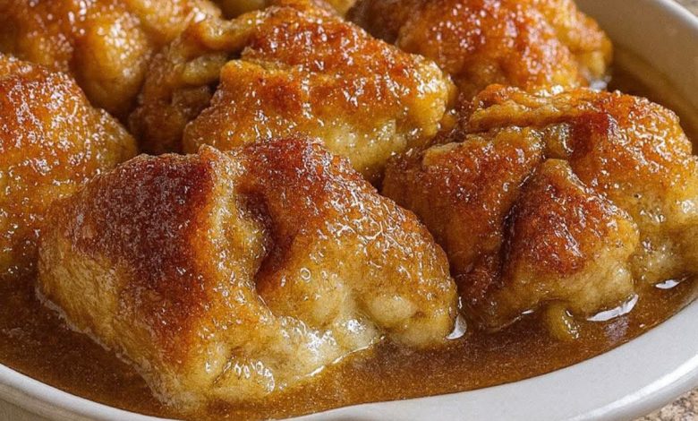 Bake at 350°F (175°C) for 35–40 minutes, or until the dumplings are golden brown and the sauce is bubbling and caramel-like.