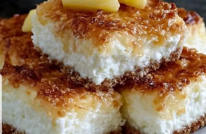 If you love tropical desserts, these Pineapple Coconut Cheesecake Bars are a dream come true. They combine the creamy richness of classic cheesecake with the refreshing sweetness of pineapple and the chewy, caramelized flavor of toasted coconut. Every bite feels like a burst of sunshine — smooth, tangy, and perfectly balanced with a crisp graham cracker crust. These bars are not only beautiful to serve but also easy to make, making them ideal for family gatherings, summer picnics, or any occasion when you crave a taste of the tropics.