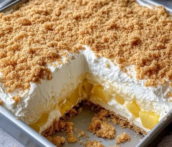This recipe is ideal for anyone who wants a dessert that is easy to prepare, attractive to serve, and delicious to eat. It is simple enough for everyday enjoyment, yet elegant enough for special occasions. Whether you prepare it for guests, family, or yourself, this dessert brings a perfect balance of sweetness, creaminess, and freshness. With its lovely layers and inviting flavor, Pineapple Cream Crumble Dessert is a wonderful recipe that deserves to be enjoyed again and again.