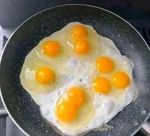 First, place a non-stick frying pan over low to medium heat. Add the butter or oil and let it melt gently. Crack the eggs carefully into the pan, keeping the yolks whole.